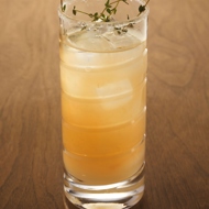 Pour tequila and syrup over the ice, then squeeze the juice of half a grapefruit into the mixture. Stir everything together, garnish with sprigs of thyme, and serve.