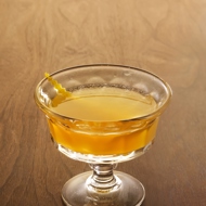 Strain into a chilled glass. Garnish with a thin strip of lemon zest.