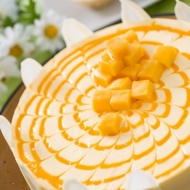 Whisk the egg yolks with sugar. Add the cream. Soak the gelatin in cold water for 5 minutes. Heat the egg-cream mixture over low heat and cook, stirring, for 2-3 minutes until slightly thickened. Remove from heat and stir in the squeezed gelatin and mango puree. Allow the cream to cool completely, then pour it into the dish with the crust. Refrigerate for 2-3 hours to set the cream, then decorate with mango slices.