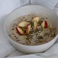 Finely chop half of the apple and add it to the porridge along with the shredded coconut. Cook for another 5 minutes.