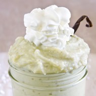 Place the pot over medium heat and bring the mixture to a boil, stirring constantly for about 15 minutes. Reduce the heat to low and cook for another 20 minutes. This time may vary depending on the size of the tapioca pearls: if they are small, they will cook faster; if large, correspondingly slower. The tapioca is ready when its pearls swell and become translucent. Remember to stir the tapioca constantly to prevent burning. After the time is up, remove the pot from heat and let it cool. Stir in the green tea powder (matcha). Mix until you achieve a uniform salad green color. Remove the vanilla pod for future use. Divide the tapioca into serving dishes and chill for a couple of hours in the refrigerator.