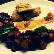 Next, coat in flour mixed with paprika and fry in vegetable oil.