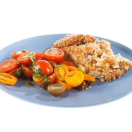 Place the cod fillet on a baking sheet lined with parchment paper and brush it with vegetable oil. Spread the nut mixture evenly over the fish.