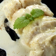 When the fish is browned, add wine and a little water, stew for about 5 minutes, then pour sour cream over the fish and keep in the oven for another 5–7 minutes.