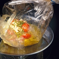 Seal the bag tightly after seasoning the contents with salt and pepper, then place it in an oven preheated to 356°F for fifteen minutes.
