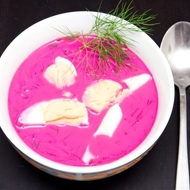 Melt the butter in a large pot, add the cooked beetroot sliced into pieces, and cook over low heat, stirring, for 10 minutes. Pour in the hot broth, add vinegar, season with salt and pepper, and let it simmer for 15 minutes on low heat. Remove the pot from the heat and let it cool slightly, then blend everything until smooth.