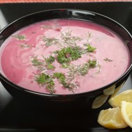 Chop the beets, ginger, garlic, and bay leaves in a blender with 400 ml of water. Transfer the mixture to a bowl.