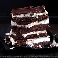 Melt the remaining butter and chocolate in a double boiler. Pour it over the vanilla layer.