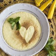 Before serving, it is best to strain through a coarse sieve, as ginger fibers may remain. However, if you have blended everything well, this step is not necessary. Pour the soup into a bowl, garnish with cinnamon, and optionally, you can add fruits or vanilla ice cream.