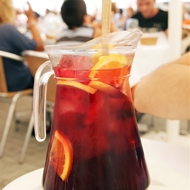 Mix the fruits, lemon juice, and sugar, then place in the refrigerator. Freeze some wine into cubes.