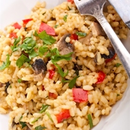 Transfer the rice to a large salad bowl, add the tomatoes, mushrooms, pepper, and parsley.