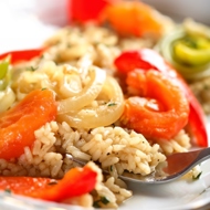 Cook the rice: bring a pot of unsalted water to a boil, add the rice, stir with a wooden spatula, and cook on high heat for 12-15 minutes until the rice is tender. Drain the rice in a large colander and rinse well under cold water. Let the water drain, season with salt, mix, and place the rice in a ring mold and set aside.