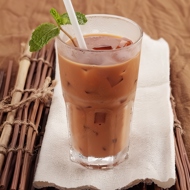 Serve in tall glasses with ice, garnished with a sprig of fresh mint.