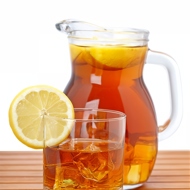 In a large pitcher, add ice, sliced lemons, and pour in the tea.