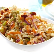 In a bowl, mix the vinegar, olive oil, sugar, mustard, a pinch of regular salt, and celery salt. Add the cabbage, carrot, and thinly sliced red onion. Toss to combine.