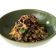 Coleslaw with pulled chicken and peanut dressing