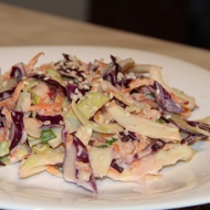 The original recipe uses black sesame seeds. It's best to use young and sweet cabbage for the salad.