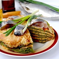 Layer them in a baking dish, alternating between carrot and spinach pancakes.