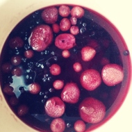 Add the frozen berries to the boiling water and wait for the water to come to a boil again, then reduce the heat.