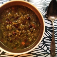 In a separate soup pot, cook the lentils uncovered over medium heat. Stir occasionally to prevent sticking to the bottom.