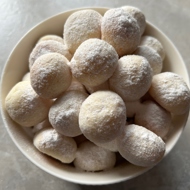 Transfer the cookies to a bowl and sprinkle with vanilla powdered sugar.