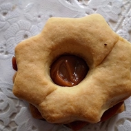 Generously spread the cooled whole cookies with condensed milk. Top with the cookies that have the centers cut out and press down to let the condensed milk ooze out. Collect any excess condensed milk with a spoon. Repeat this with all prepared shapes.