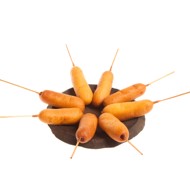 A beautiful alternative to the familiar hot dog, where the dough is enveloped in a delicate coating—a batter made from a mixture of wheat and corn flour. This results in a vibrant dough with a slightly sweet flavor. The recipe requires you to pierce the hot dog with a skewer, then dip it into the flavorful batter and fry it thoroughly in a skillet. Making corn dogs is simple, quick, and fun, so we recommend involving their main eaters—children and teenagers—in the process.