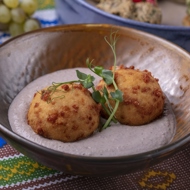 Shape the mixture into balls and fry them in a deep fryer or in a skillet with a generous amount of vegetable oil.