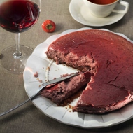 In a blender, puree the raw beets and cognac. Add the puree to the cheese dough and mix with a mixer until the color is uniform. Spread the mixture over the baked crust, reduce the oven temperature to 248°F, and place the pie inside for one hour to one hour and ten minutes.