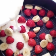 Wash the fruits and place them at the bottom of the mold (any berries, bananas, peaches, whatever you like).