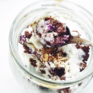 Cut the cooled biscuit into squares (or however you like). Take a convenient favorite mold and layer: cottage cheese, biscuit, cottage cheese, nuts, cottage cheese, biscuit, blueberries, cottage cheese.