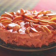 Spread half of the cream over the base, then place the nectarine cubes on top of the cream, distribute the remaining cream, and decorate with the remaining nectarines on top. In this case, you can vary the proportions of cream and nectarines to your taste and layer them in any order.