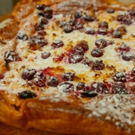 Sprinkle a handful of cranberries over the surface of the casserole.