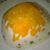 Take a mold (I used glasses). Layer as follows: banana, cottage cheese mixture, kiwi, cottage cheese mixture, peach, cottage cheese mixture.