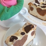 Also melt the white chocolate in a water bath, mix with cream. Cover the cottage cheese dessert with white chocolate and decorate with hearts and circles.
