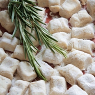 Pass the cottage cheese through a meat grinder or rub it through a sieve, beat in 2 raw eggs, add sugar, 1 tablespoon of melted oil, 1/2 teaspoon of salt, and mix everything well. Then, add the sifted flour to the mixture and knead. Place the cottage cheese dough on a floured surface and cut it into four equal parts, roll each part into a thin sausage shape, slightly flatten it, and cut it into small pieces (diamonds), which should be dropped into salted boiling water and cooked until they float to the surface.