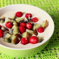 Top with seasonal berries and fruits (besides berries, soft fruits like peaches, kiwi, and pineapple work well; for nut lovers, add nuts or granola).