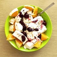 Combine cottage cheese with yogurt and honey to form a smooth mixture. You can add various spices and salt. For example, I really like cinnamon.
