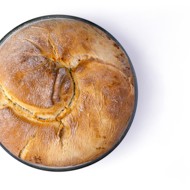 Grease a pie dish with butter and dust it with flour, then arrange the prepared roll in a circular, shell-like shape inside the dish. Bake in the oven for 35 minutes. Serve the pie warm, lightly dusted with powdered sugar.