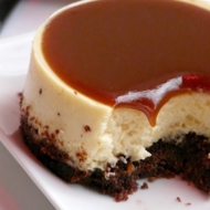Blend the cookies, cocoa powder, 40 g of butter, and 25 g of brown sugar in a blender. Use the resulting mixture to line the sides of a baking dish, and place the dish in the refrigerator.