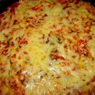 The seventh layer is tomato sliced into rings, and of course, top it with grated cheese.