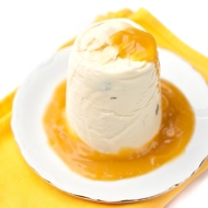 Transfer the cottage cheese mixture to a mold greased with butter and sprinkled with sugar, and steam or bake in the oven (in the latter case, sprinkle the mold with crushed breadcrumbs instead of sugar). Serve the pudding hot, with fruit syrup or jam.