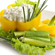 Slice the bell pepper into wedges and fill them with the prepared mixture.