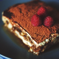 Line the bottom of bowls or dessert cups with ladyfinger cookies soaked in coffee and brandy (break the ladyfingers in half if necessary to fit into small serving bowls). Top with a layer of cottage cheese cream and grate dark chocolate over the cream. Repeat with a second layer, alternating cookies, cream, and grated chocolate. Refrigerate the dessert for a few hours, preferably overnight before serving.