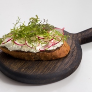 Place the radishes on the cream, having first patted them dry with a paper towel.