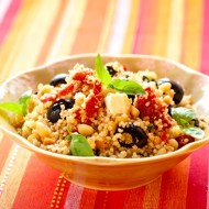 Couscous salad with roasted vegetables and French pepper dressing