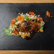 Couscous with lamb and pear chutney