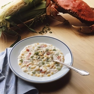 Pour in the broth and bring to a boil. Add the corn and boil for 4–5 minutes until the corn is tender.