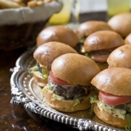 Slice the buns and layer the ingredients on the bottom half in the following order from bottom to top: sliced tomatoes, beef patties, sliced pickles, and flattened olives. Add cheese (preferably 2 pieces) and mayonnaise mixed with ketchup, then top with the other half of the bun.