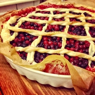 I place the filling in the form. On top, I decorate with braids made from the leftover pastry, and to keep their shape, I brush them with egg. Then, I put it in the oven for about 20 minutes.